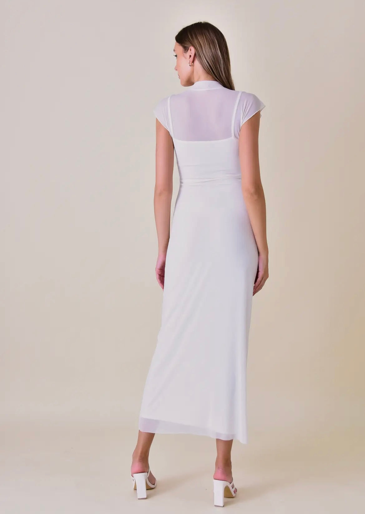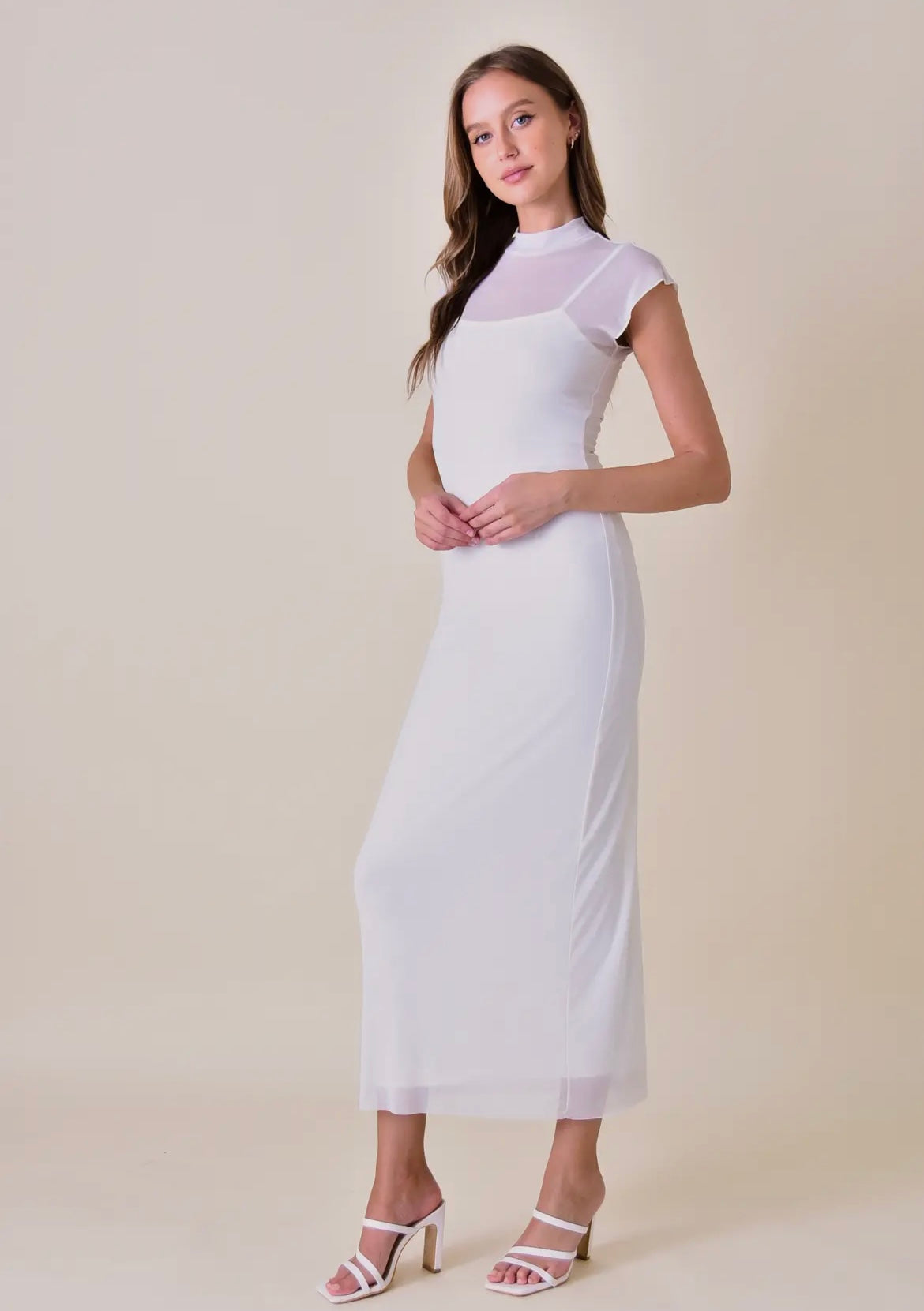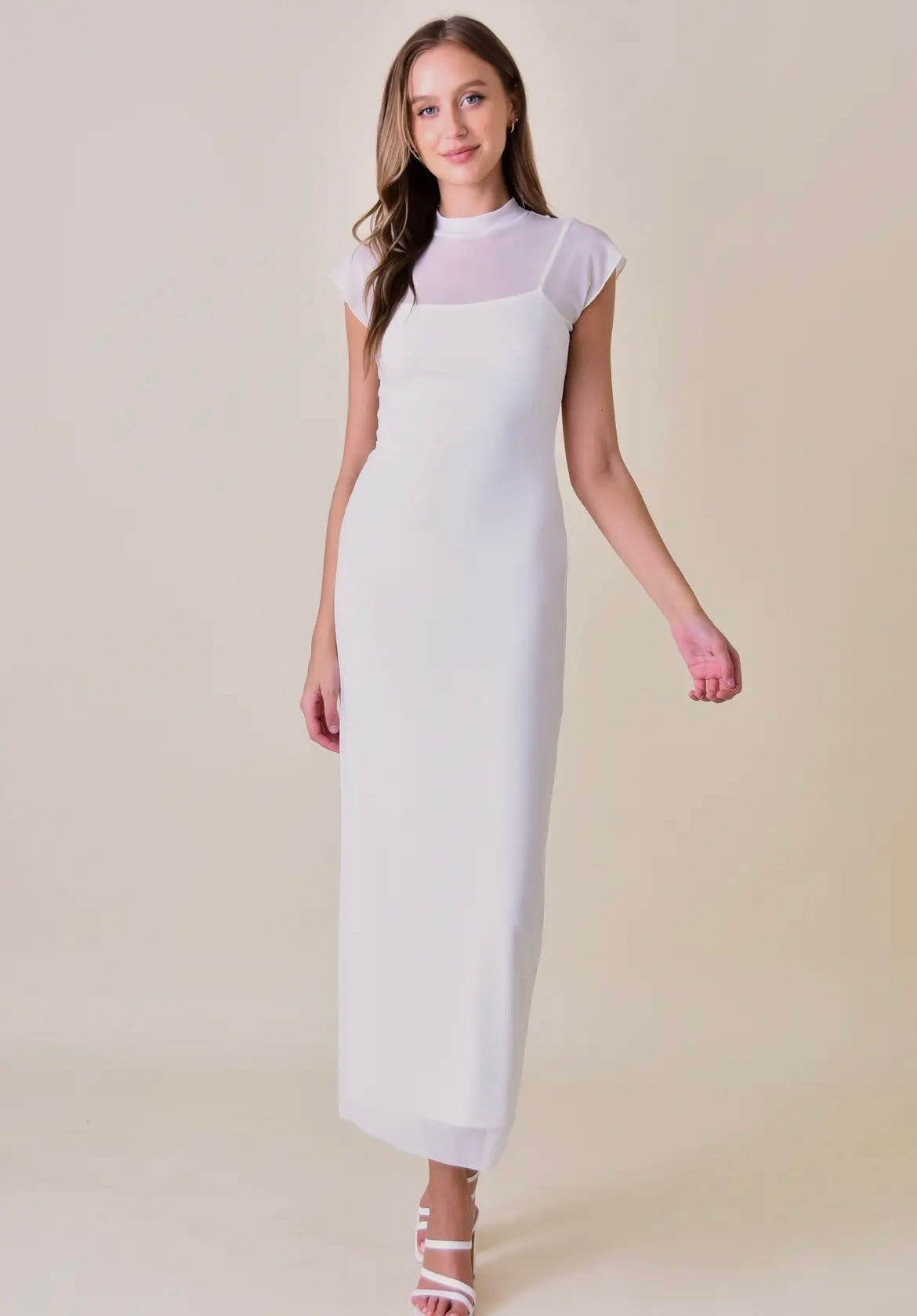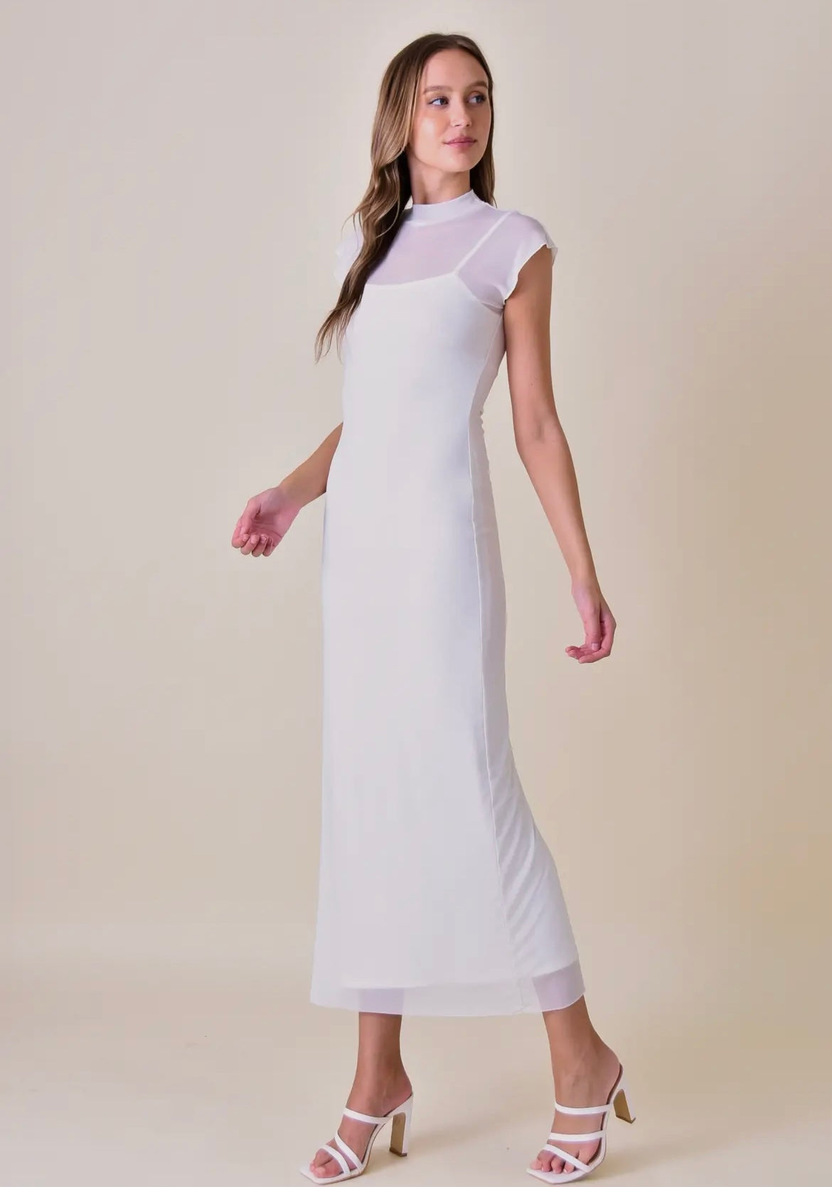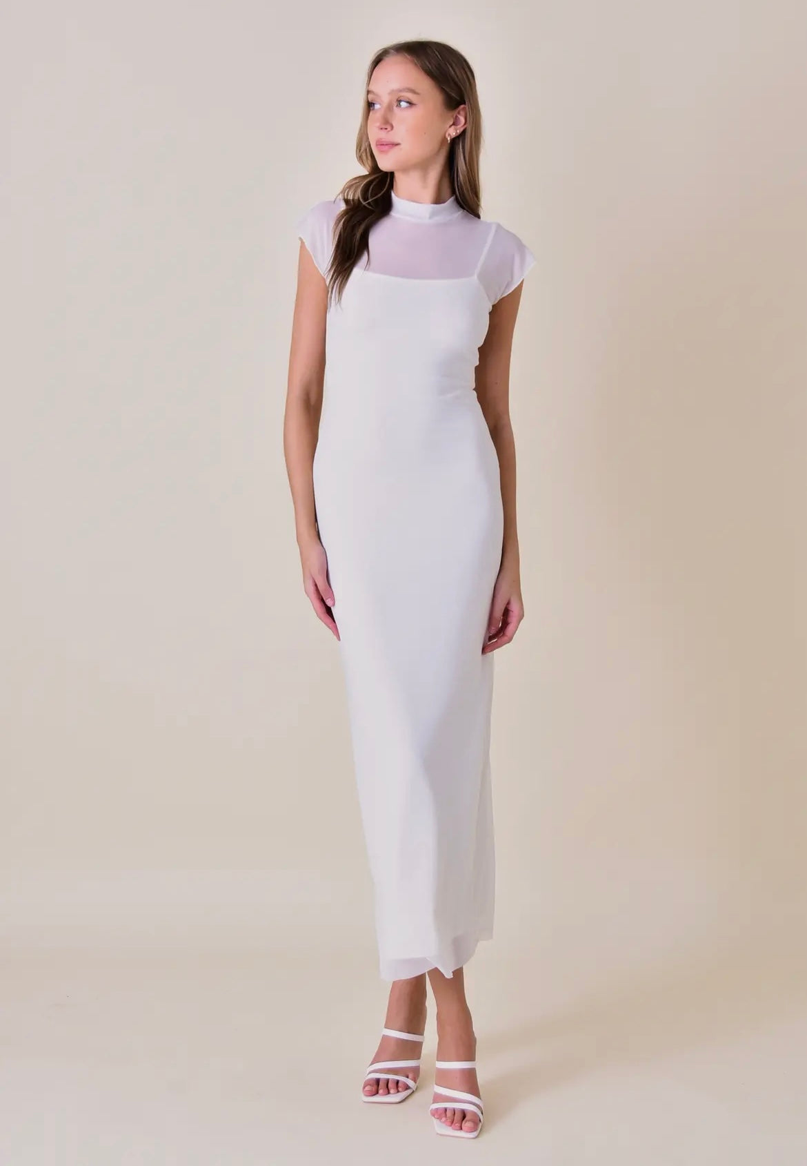 Chic Minimalist Mock Neck Cap Sleeve Maxi DRESS