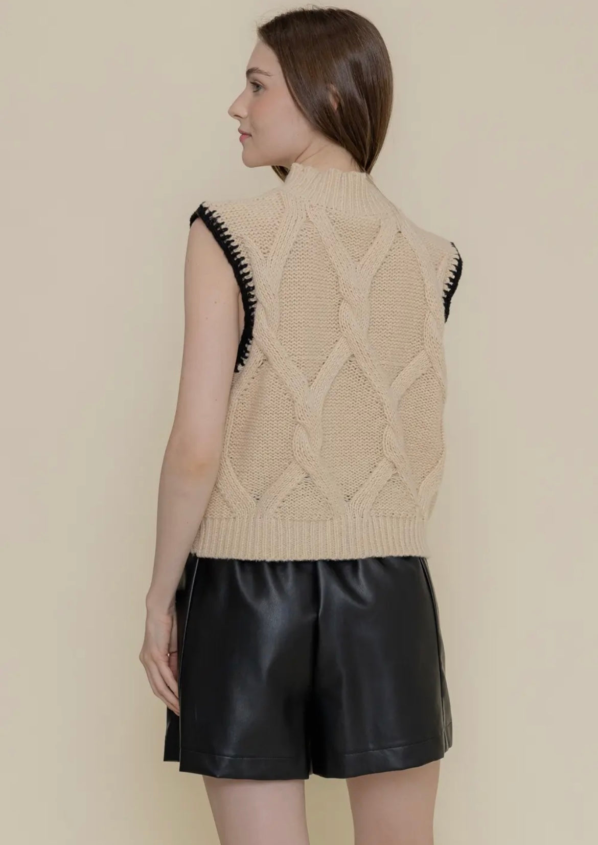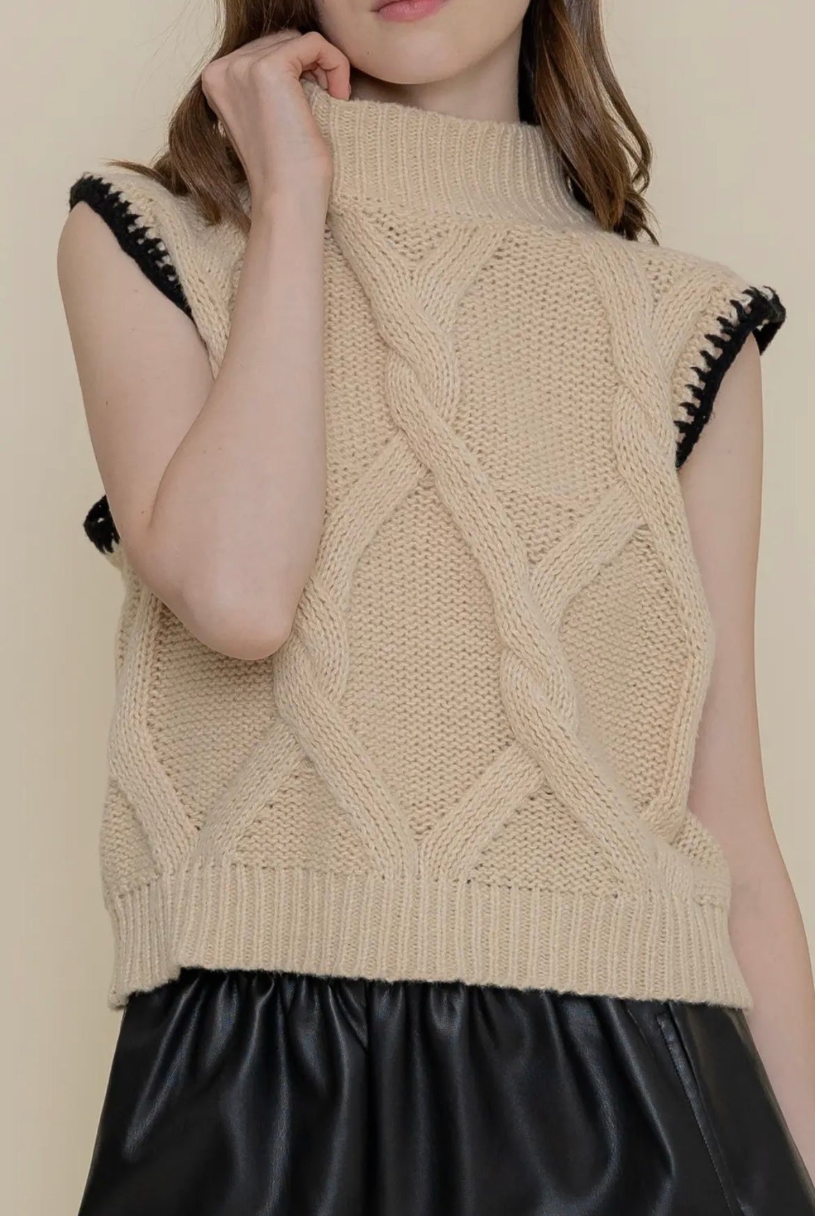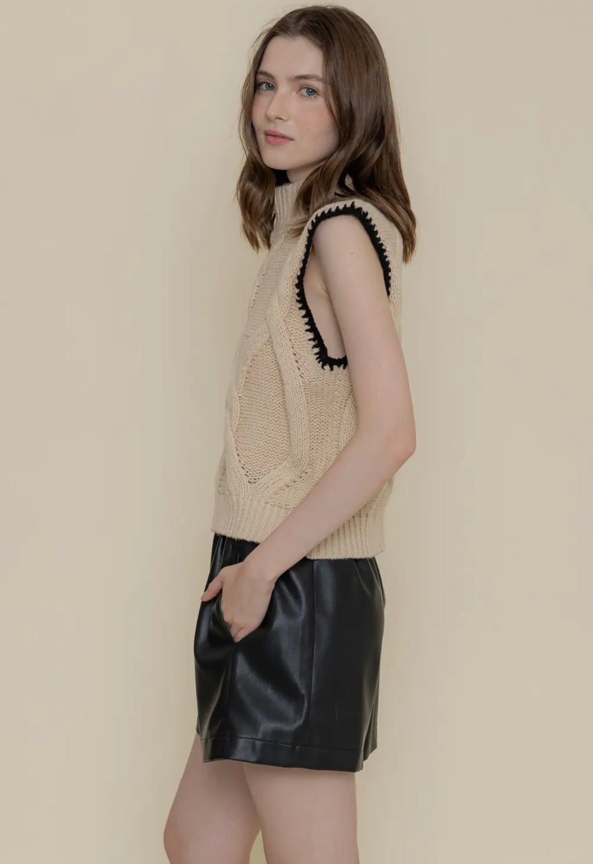 Chic Color Block Mock Neck Cap Sleeve Knit VEST