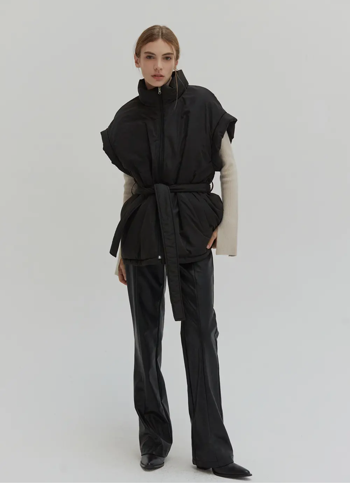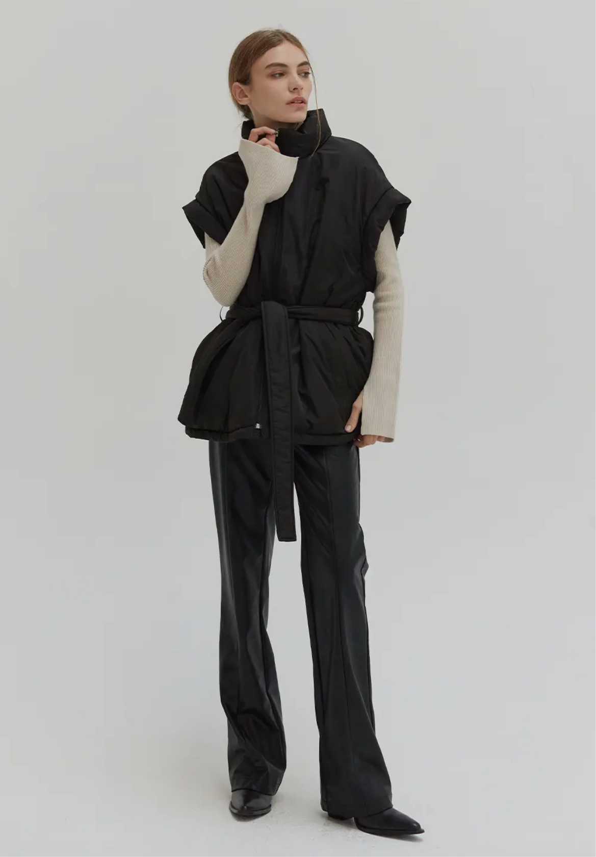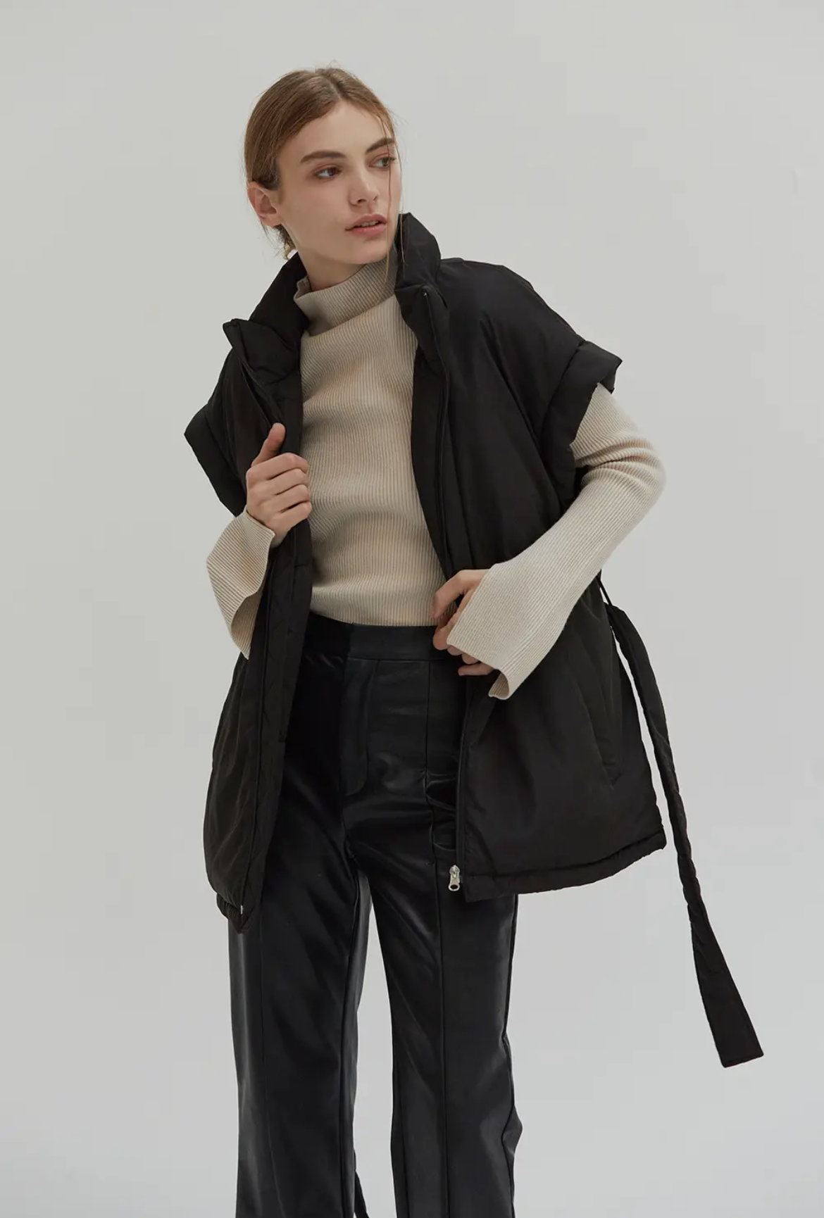 Step out into nice weather in style with our Green Pretty Puffer Vest! This best-seller will keep you warm. What sets this vest apart is its show-stopping collar and modern cut. Comes with a belt for a modern and stylish silhouette.