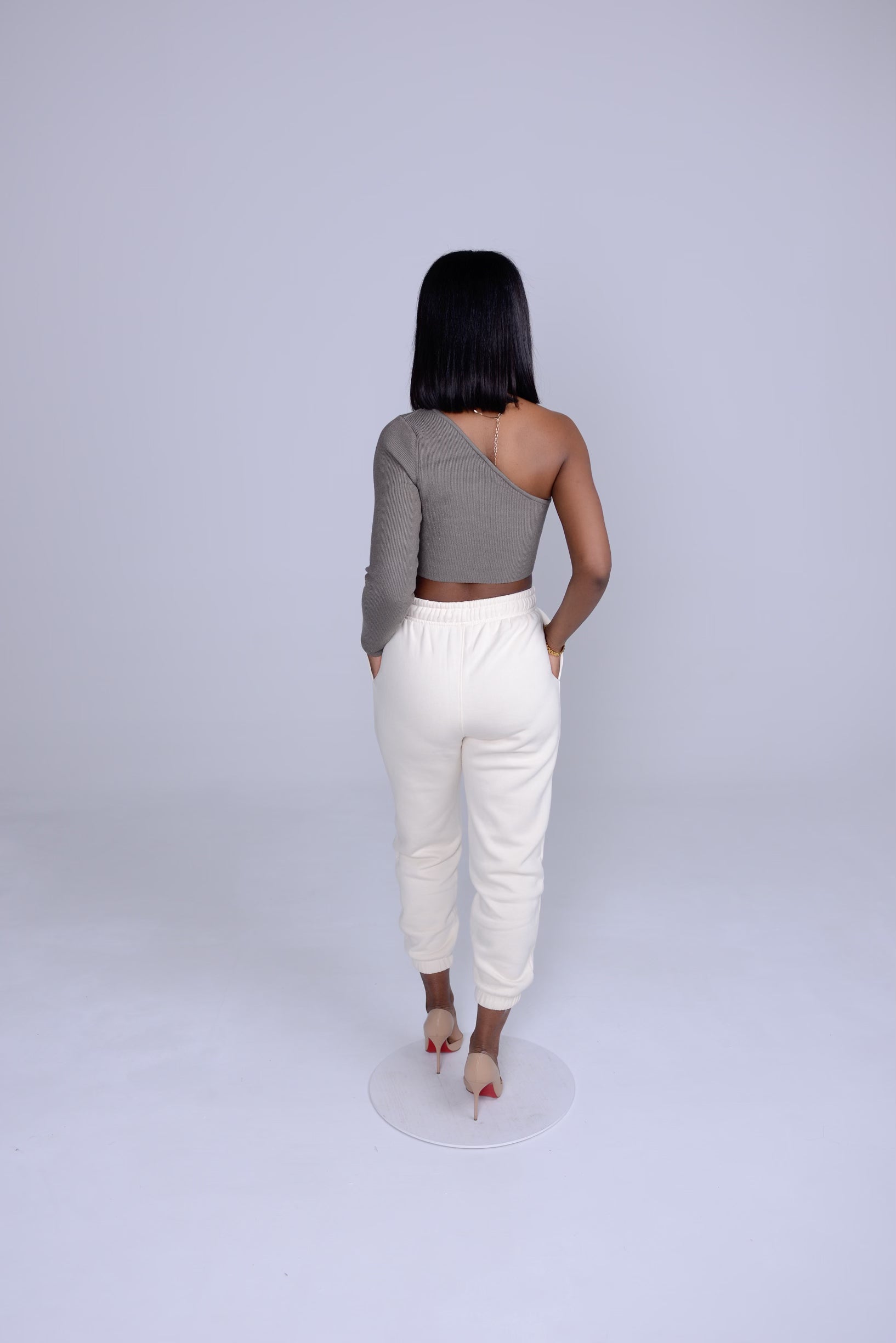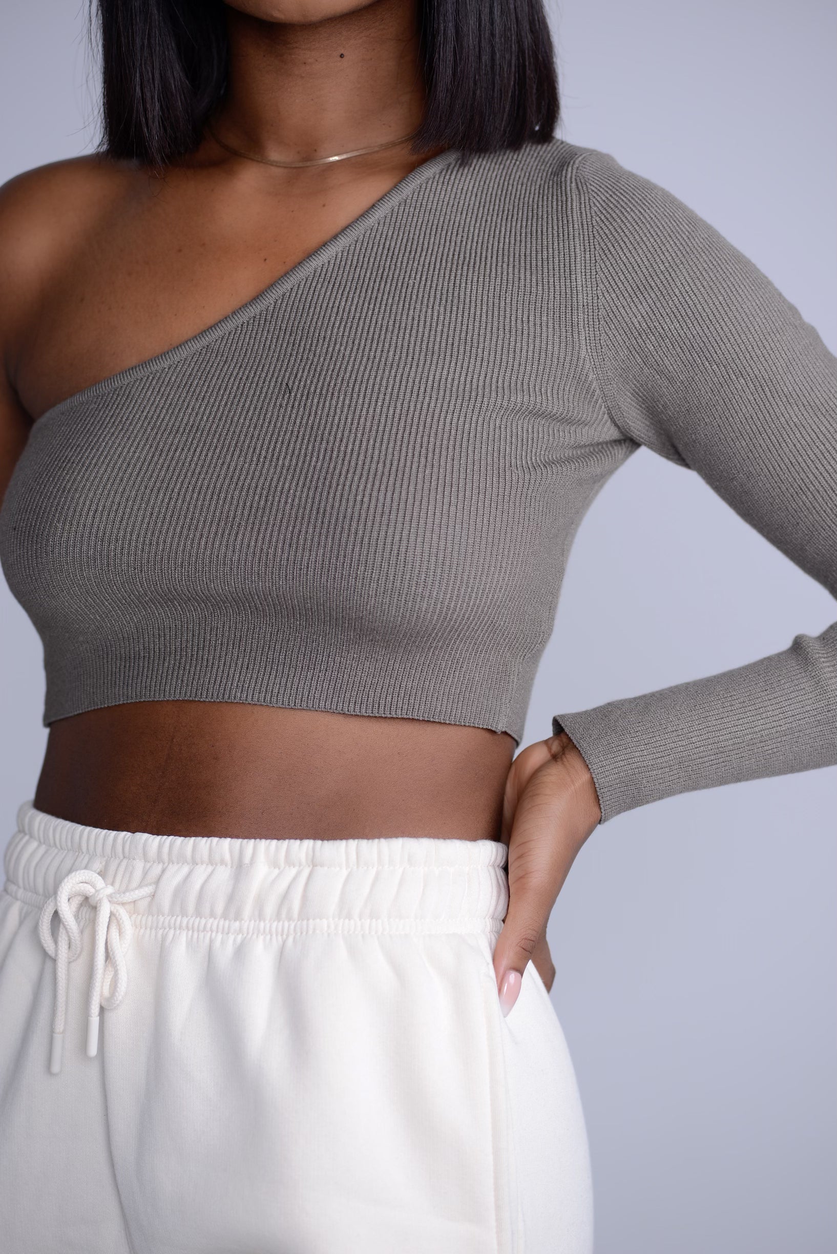 One shoulder long sleeve cropped top