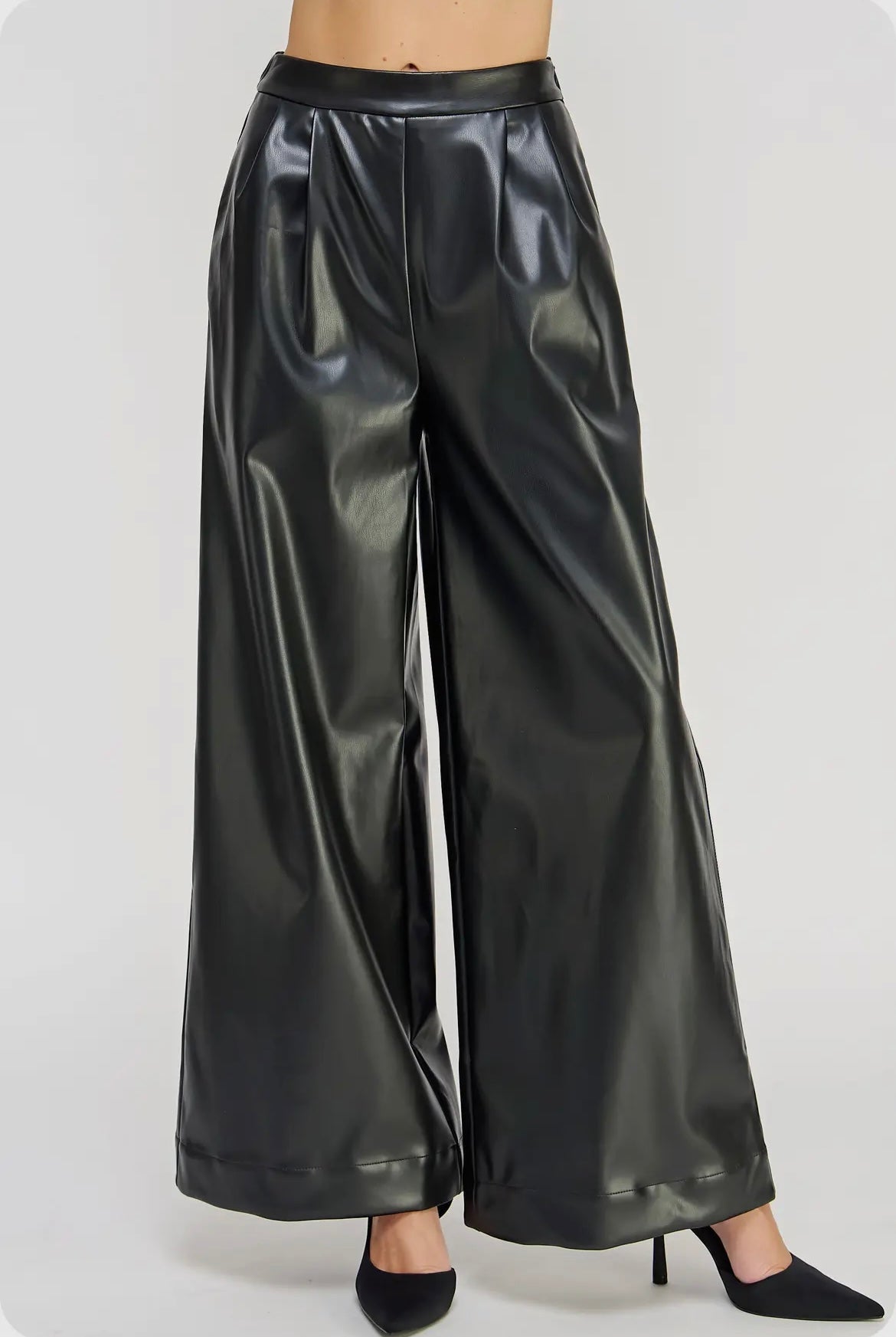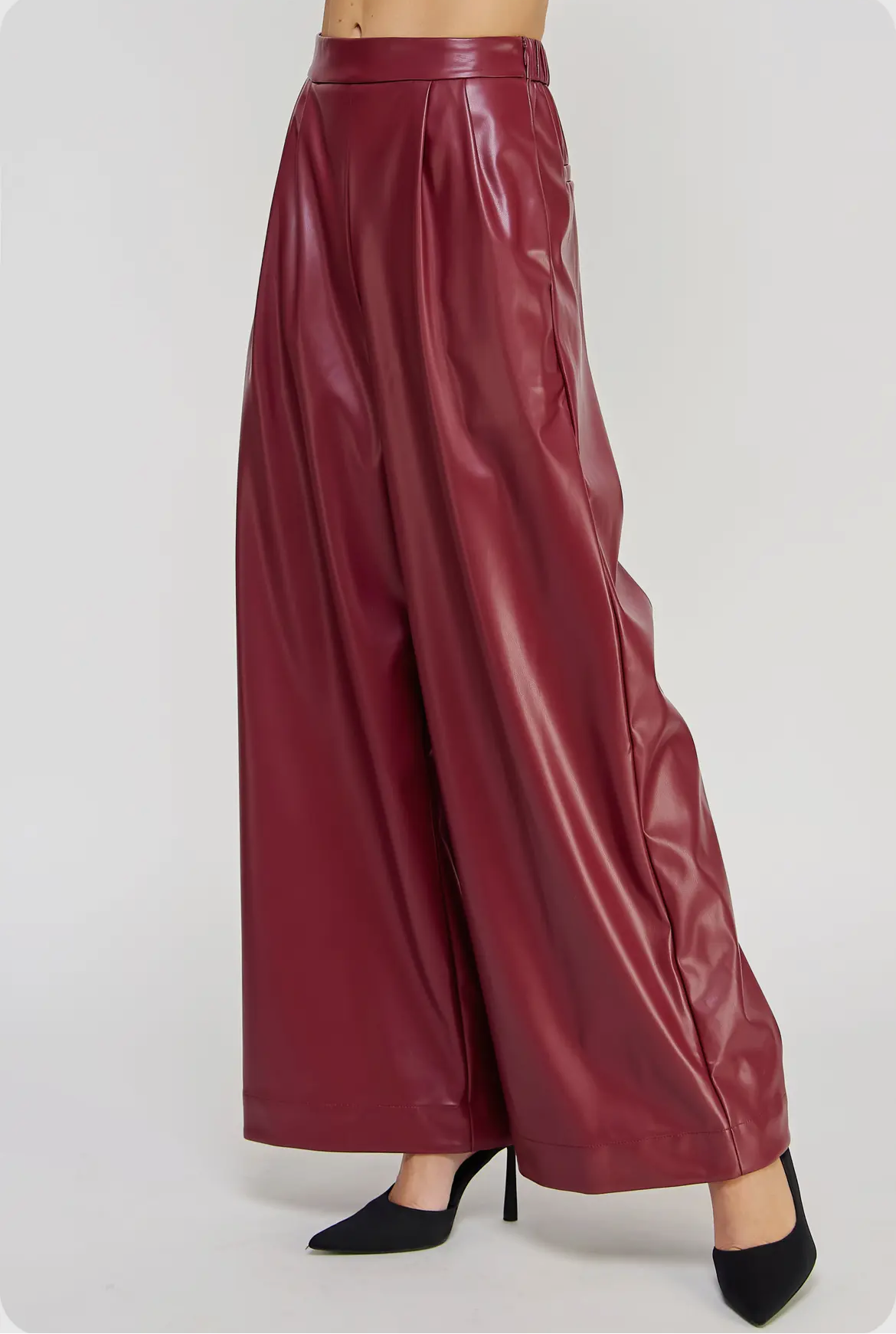 Pleated Details Wide-Legs Faux Leather Pants